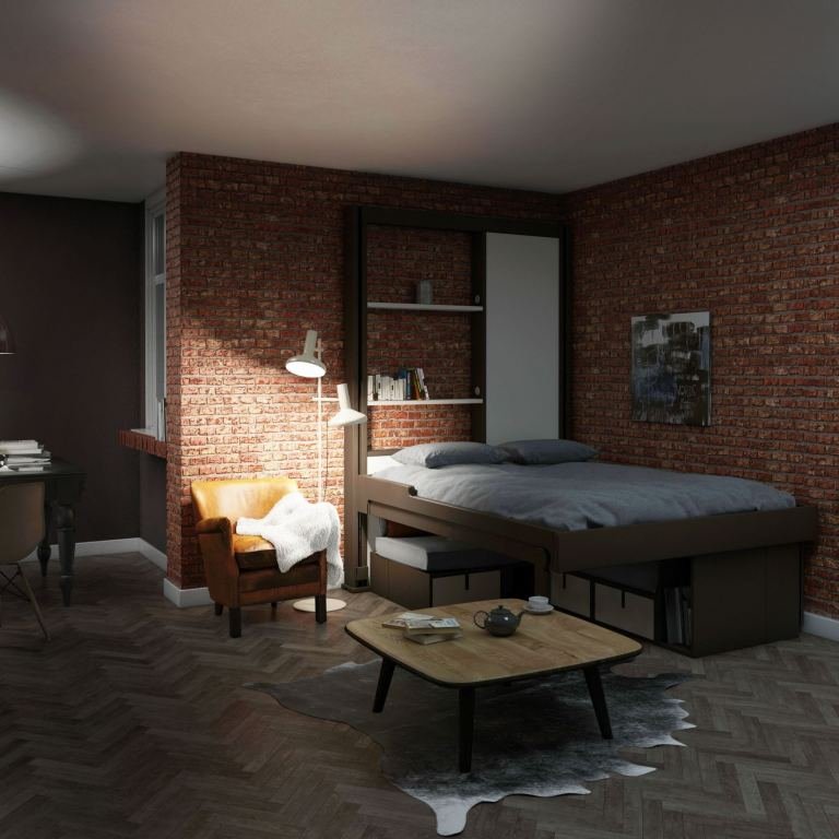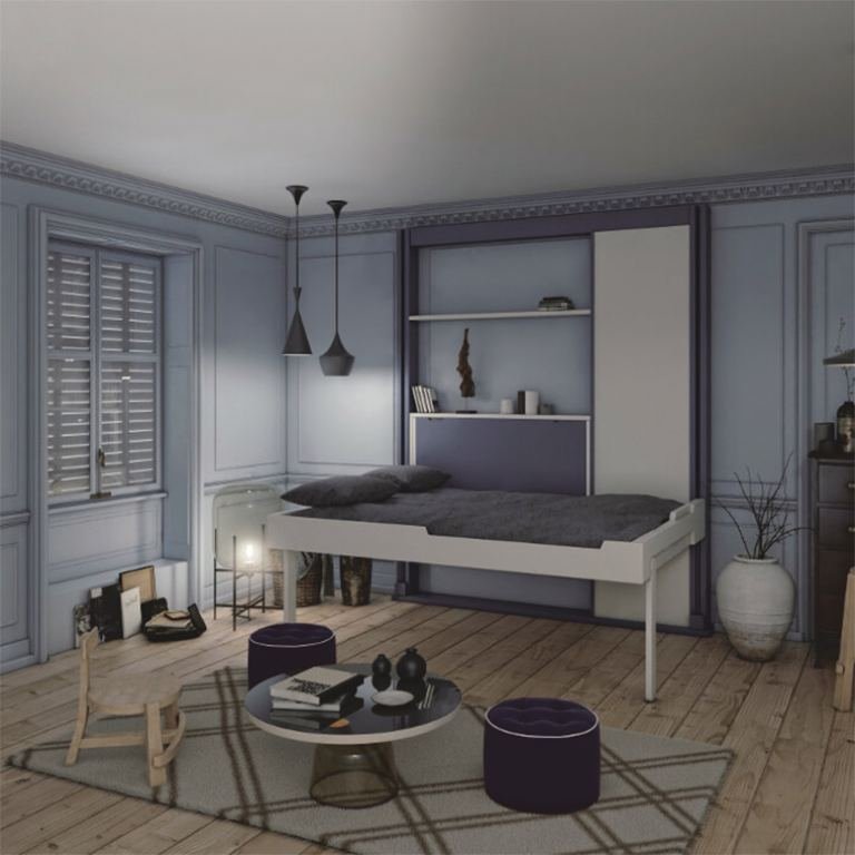 Using a counterweight system as simple as a scale, the bed lifts with one hand to free up the entire floor space. Concealed bed “Piuma” is a space-saving solution from Cinius.