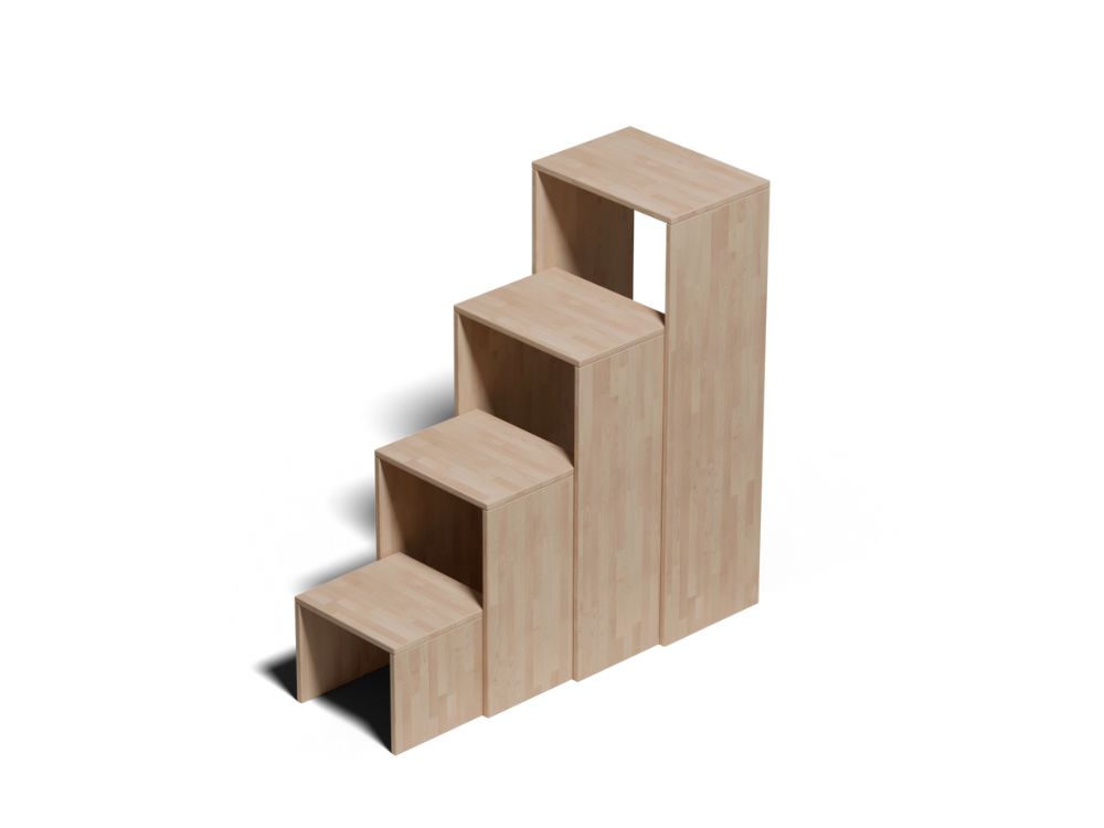Les différents éléments glissent sur des rails en bois et peuvent supporter des poids allant jusqu’à 150 kg.