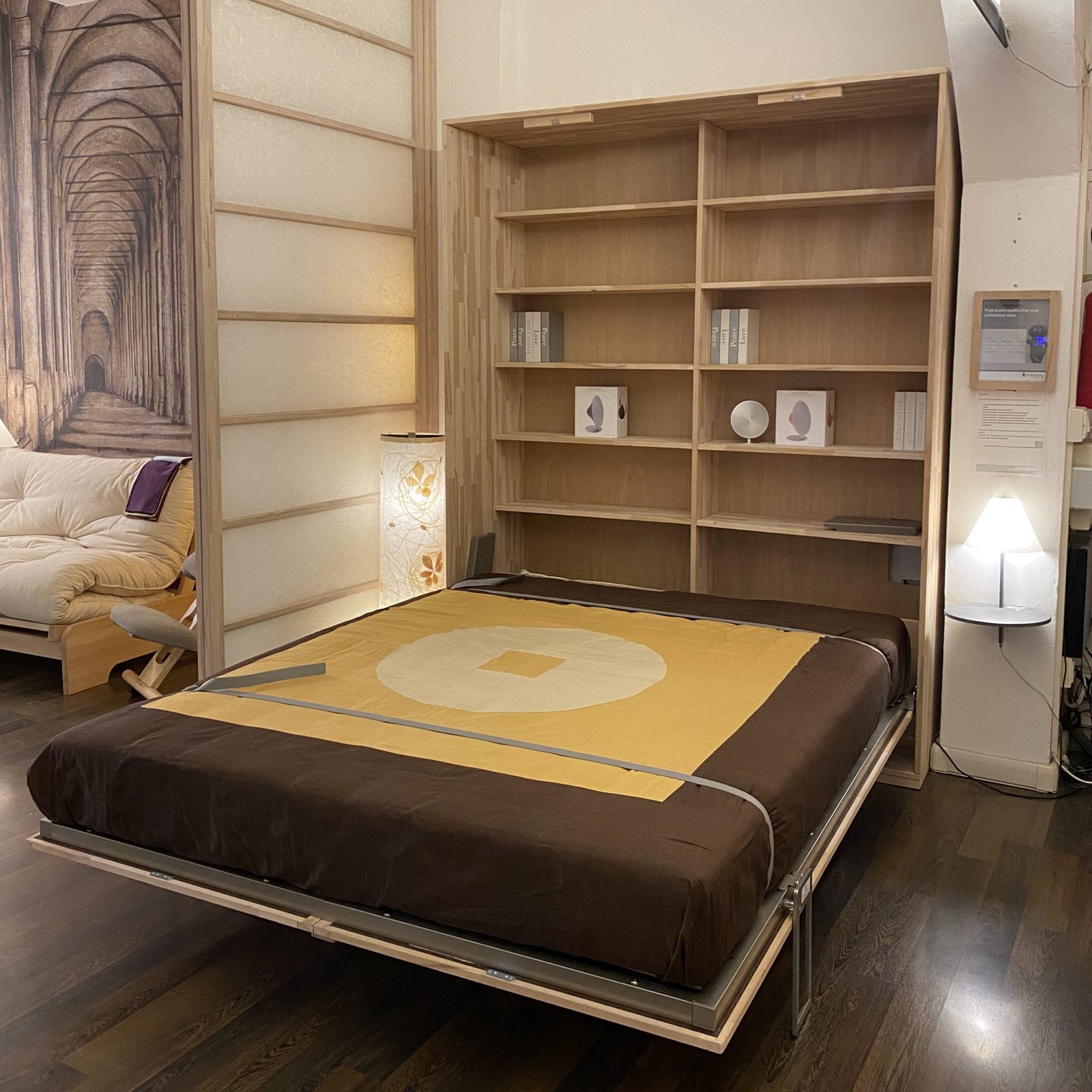 Il s’agit d’un lit en bois massif de hêtre qui le matin peut être fermé dans une armoire, idéal pour meubler les studios et les mansardes.