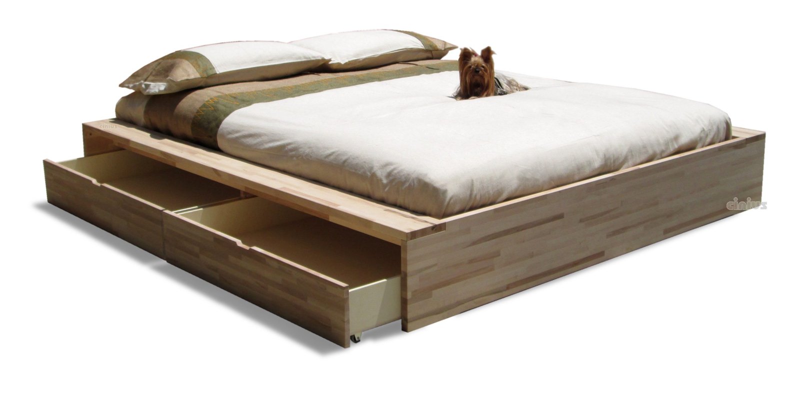Le lit peu encombrant selon Cinius : lit confortable avec tiroirs coulissants sous le lit sur roulettes. Comodo est un lit de conteneurs hautement personnalisable :