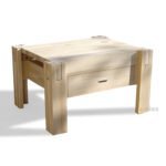 Son style se caractérise par la géométrie essentielle des articulations : les pieds croisent la structure avec un système d’articulation inédit. Sur demande, leur couleur peut être différenciée du reste du lit!