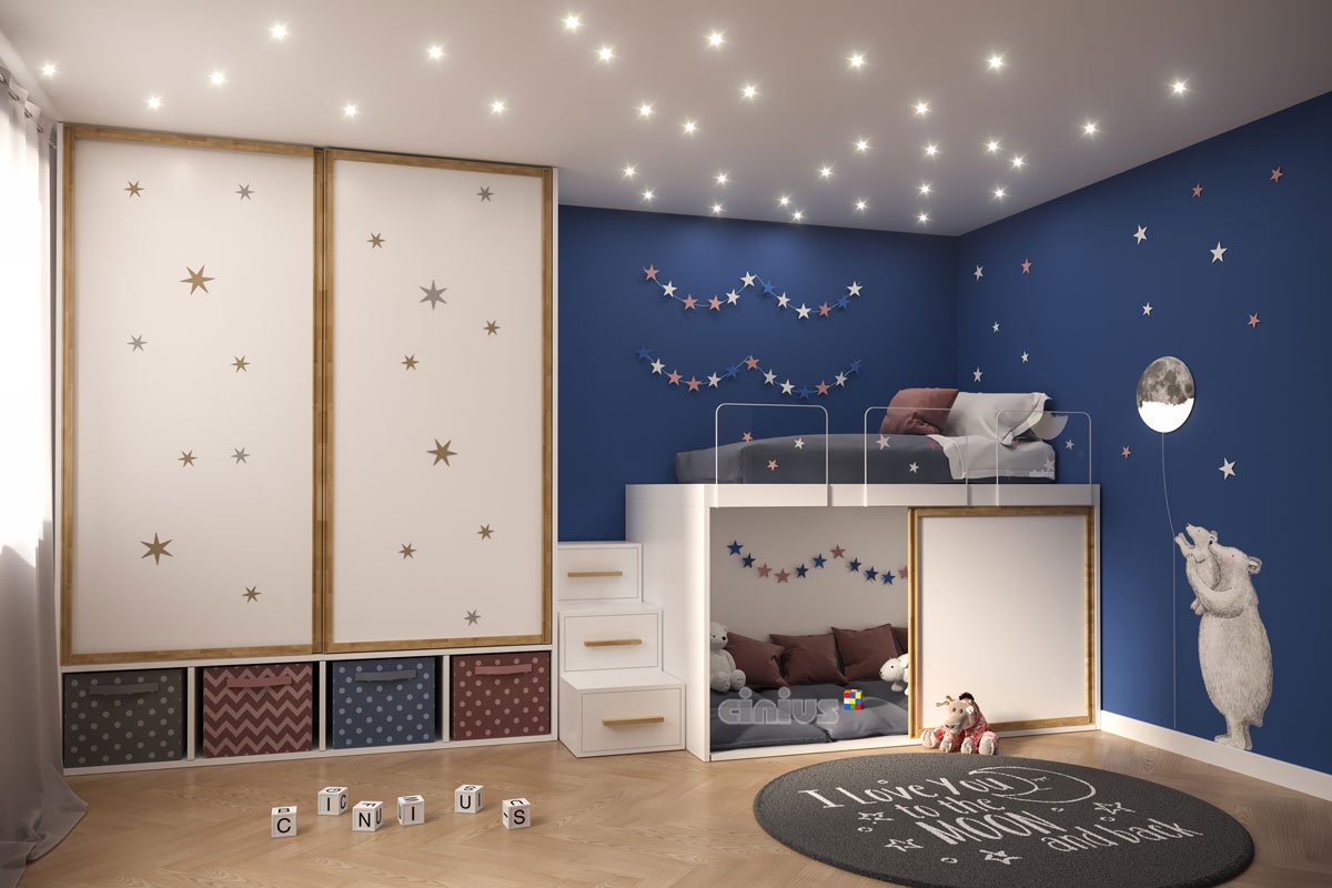 La Cameretta SPAZIOBED Young TANA trasforma il vano sottostante al letto alto in uno spazio per i giochi di facile accesso anche per i più piccoli grazie alle ante laterali scorrevoli.Composizione con: